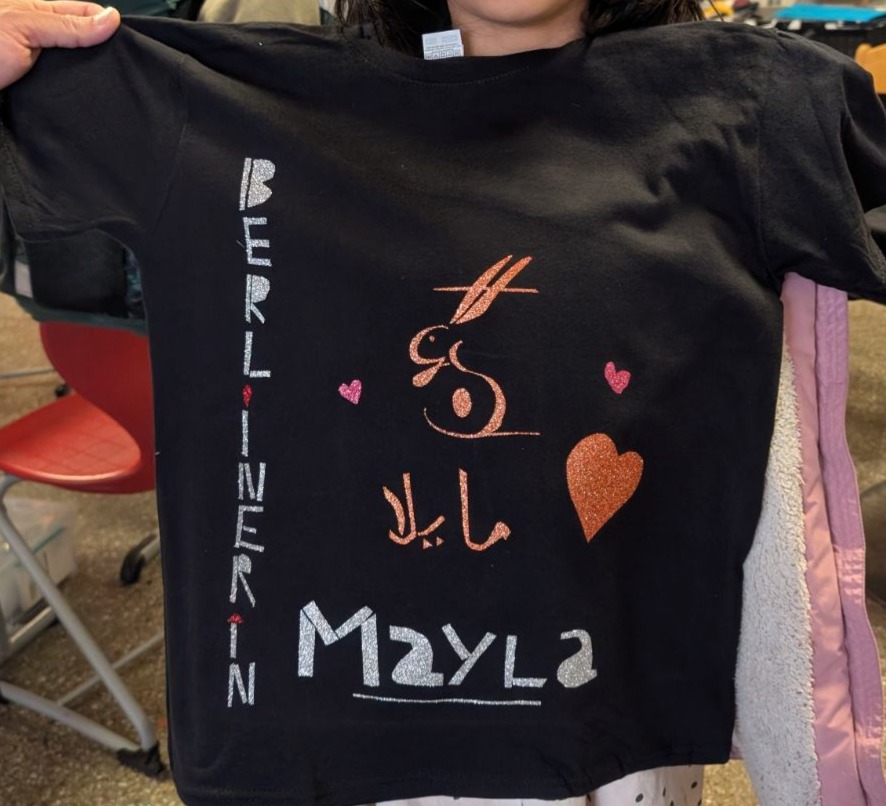 Beim Meet&Greet mit Osterspecial am 24.03.2026 im Foyer der Schule sind unter Einsatz der neuen Transferpresse viele schöne Glitzer‑T-Shirts entstanden. Die zuvor mit dem neuen Plotter ausgeschnittenen Motive wurden von Eltern und Kindern gemeinsam kreativ auf T-Shirts arrangiert. Mehrere Eltern zeigten großes Interesse an der Arbeit des Fördervereins, sodass wir an diesem Tag sogar neue Mitglieder gewinnen konnten. Ein besonderes Highlight für die Kinder waren die kleinen 3D‑Hasen, die käuflich erworben werden konnten – sie waren am Ende restlos ausverkauft.